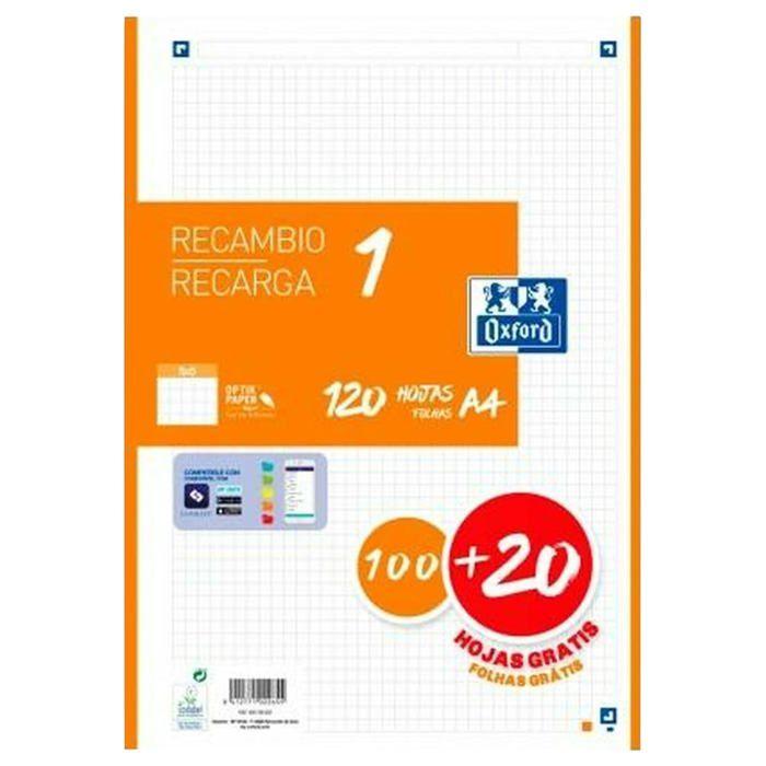 Recharge A4 - OXFORD - S8434023 - 120 feuilles - Quadrillage 5 mm - Orange
