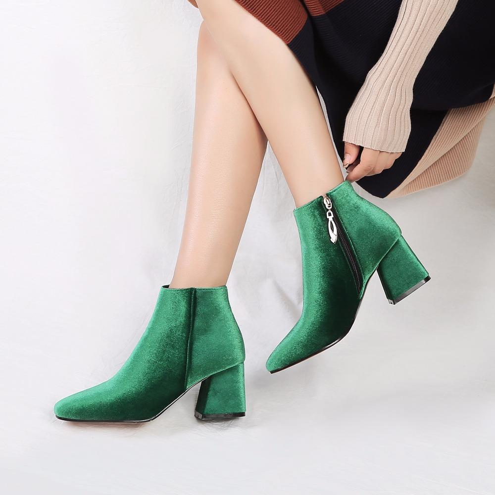 Брендовые женские ботильоны Velvet, зимние модные короткие ботинки на толстом среднем каблуке, короткие туфли для вечеринок, большой размер 48, черные, красные, зеленые