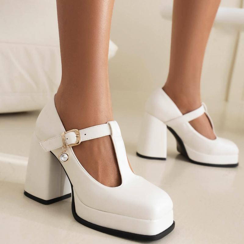 Классические туфли на высоком блочном каблуке на платформе для девочек, черные, белые, женские туфли на каблуке, 2024, новые, с Т-образным ремешком, весенние туфли-лодочки, свадебная вечеринка, танцевальная обувь