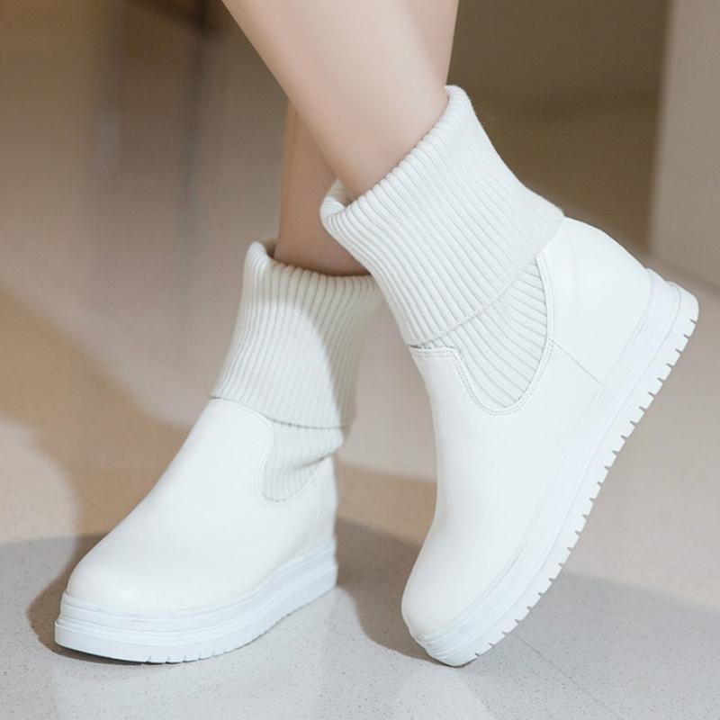 Эластичные носки Ботильоны Женские Зимние Осенние Туфли Белые Удобные С Увеличением Роста Короткие Ботинки Девушки Водонепроницаемые — купить товар онлайн с бесплатной доставкой по всему миру!