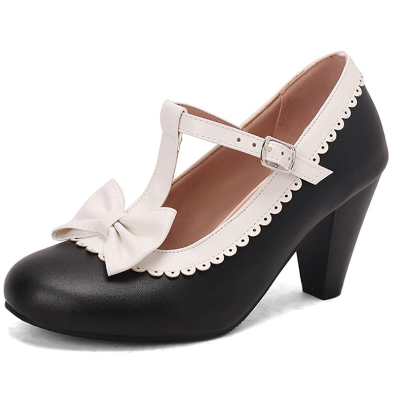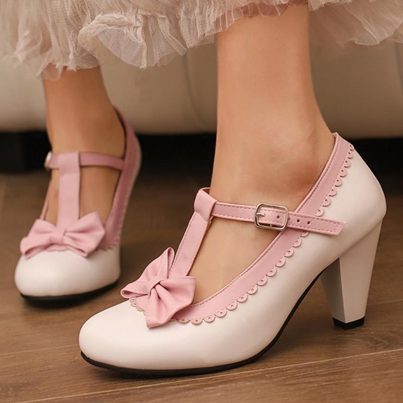 Сладкие туфли Лолита для девочек, милый бант, розовые, черные, белые, женские туфли-лодочки, ремешок на щиколотке, элегантные, для вечеринки, свадебные туфли, женские