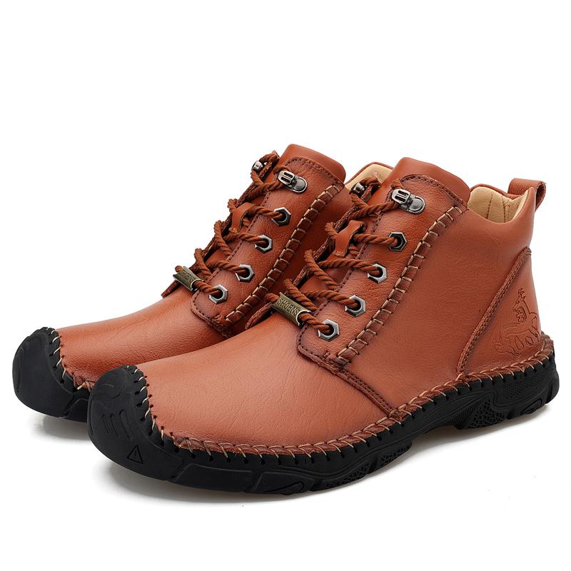 Высокие повседневные кроссовки Мужские на шнуровке Натуральная кожа Плоская подошва Ботинки Высококачественная обувь для хайкинга Мужские Широкий носок Босоногие ботинки Шнуровка