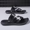 Модные Удобные Мужские Сандалии Однотонные С Открытым Носком Мужские Кожаные Сандалии Новые Шлепанцы Пляжные для Мужской Обуви 2025