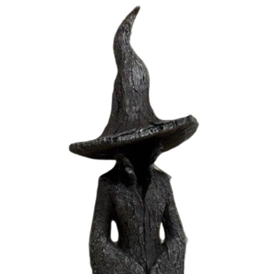 Загадочный ведьминский стиль: Воплощая сущность таинственной ведьмы, эта статуя демонстрирует захватывающие детали, такие как одеяние из корней дерева и шляпа, надвинутая набок.. Замысловатый дизайн создает мрачную, но очаровательную атмосферу, идеально подходящую для декораций на Хэллоуин или в стиле фэнтези.