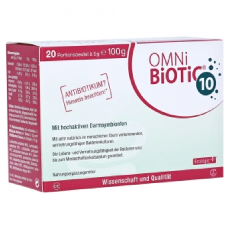 В течение всего периода антибиотикотерапии размешивайте 1 пакетик OMNi-BiOTiC® 10 AAD (= 5 г) дважды в день примерно