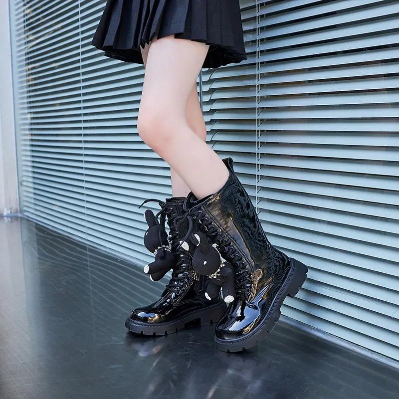 Обувь Девочка Модная Девушка Высокие Сапоги 2025 Осень/Зима Платформа Сапоги Принцессы Тренд Сапоги с Высоким Голенищем Мультяшная Обувь для Девочки Детская Обувь