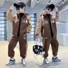 Весенние и осенние комплекты для мальчиков в корейском стиле, одежда для подростков, 2 предмета, куртка с капюшоном, пальто + брюки, повседневная детская одежда