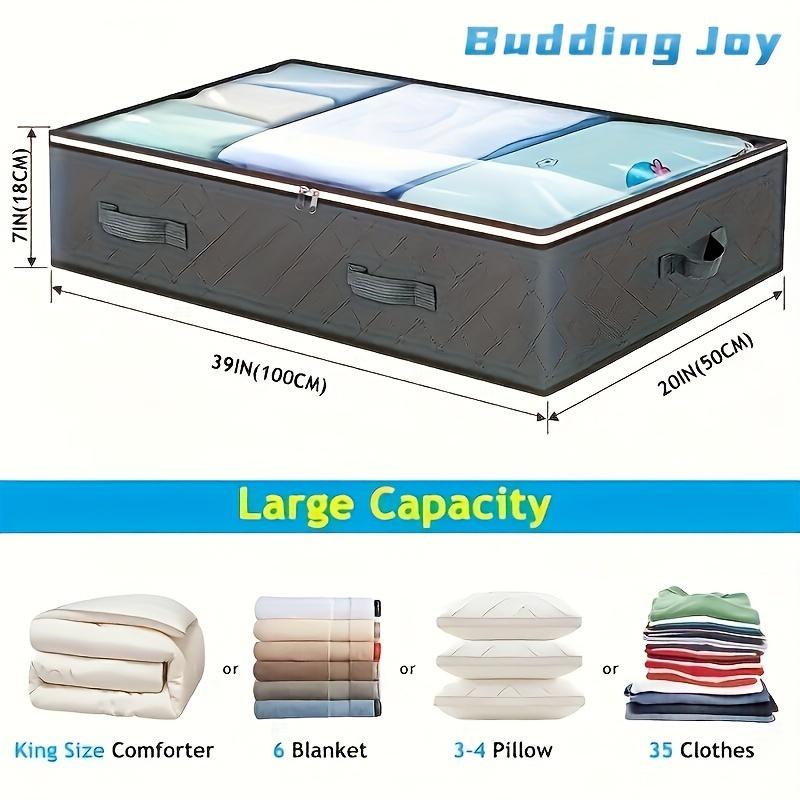 Прикроватный ящик для хранения с крышкой, Подкроватная сумка для хранения с прозрачным окном, Усиленные ручки для одежды, Постельного белья