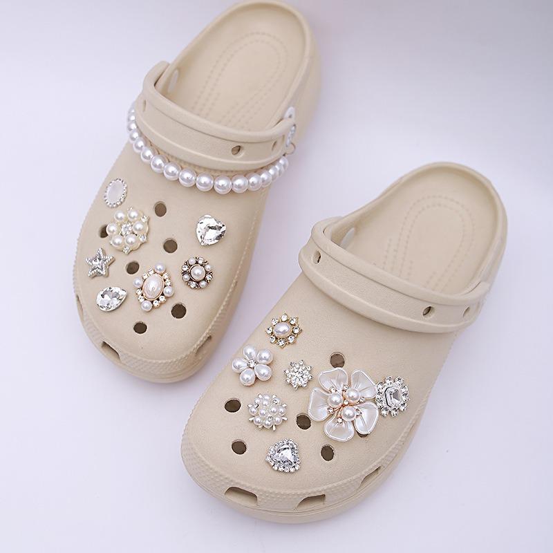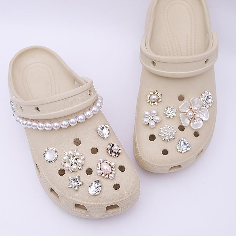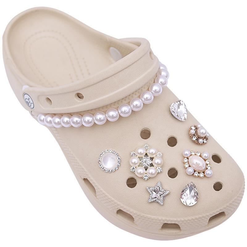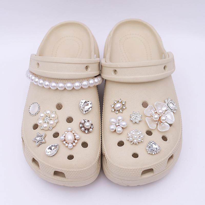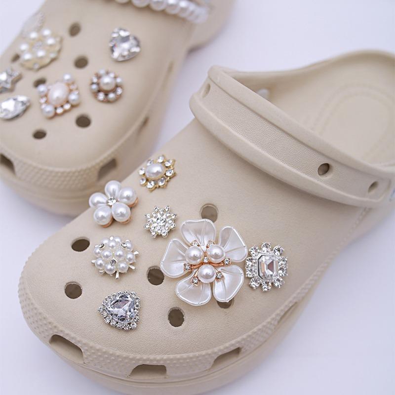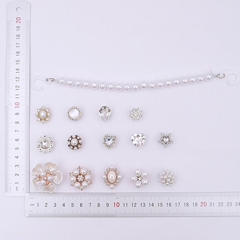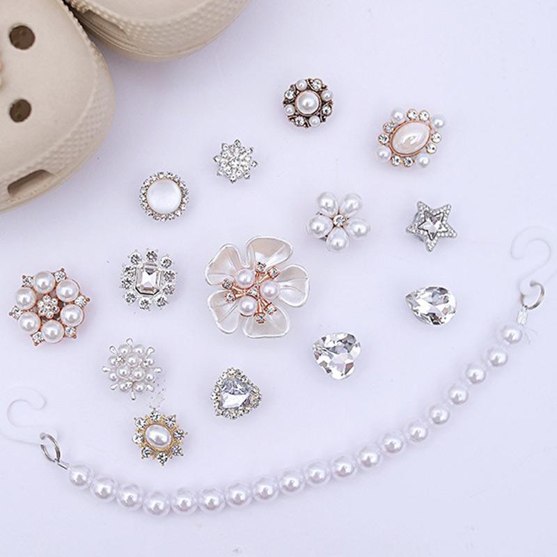 15 шт. Роскошный металлический набор шармов для обуви Аксессуары Отверстие Пряжка для обуви Усовершенствованная Алмазная Жемчужная Цепочка Балетный Стиль DIY 3D Украшения для обуви
