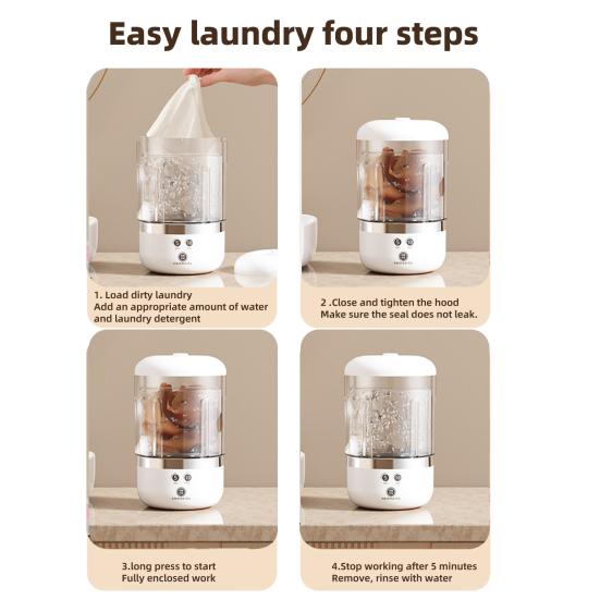 Мощный и бережный процесс стирки этой мини-стиральной машины гарантирует тщательную очистку деликатных вещей, сохраняя их качество и свежесть.