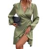 Женское мини-платье с V-образным вырезом, длинным рукавом-фонариком и боковой шнуровкой