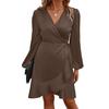 Женское мини-платье с V-образным вырезом, длинным рукавом-фонариком и боковой шнуровкой — купить товар онлайн с бесплатной доставкой по всему миру!