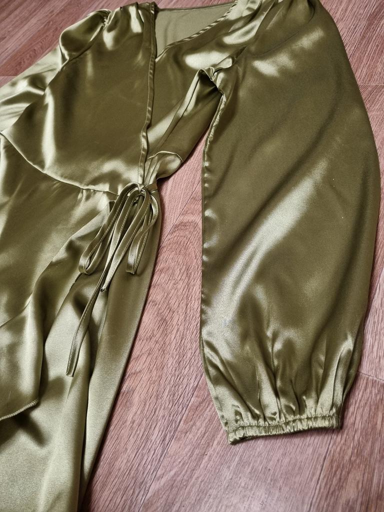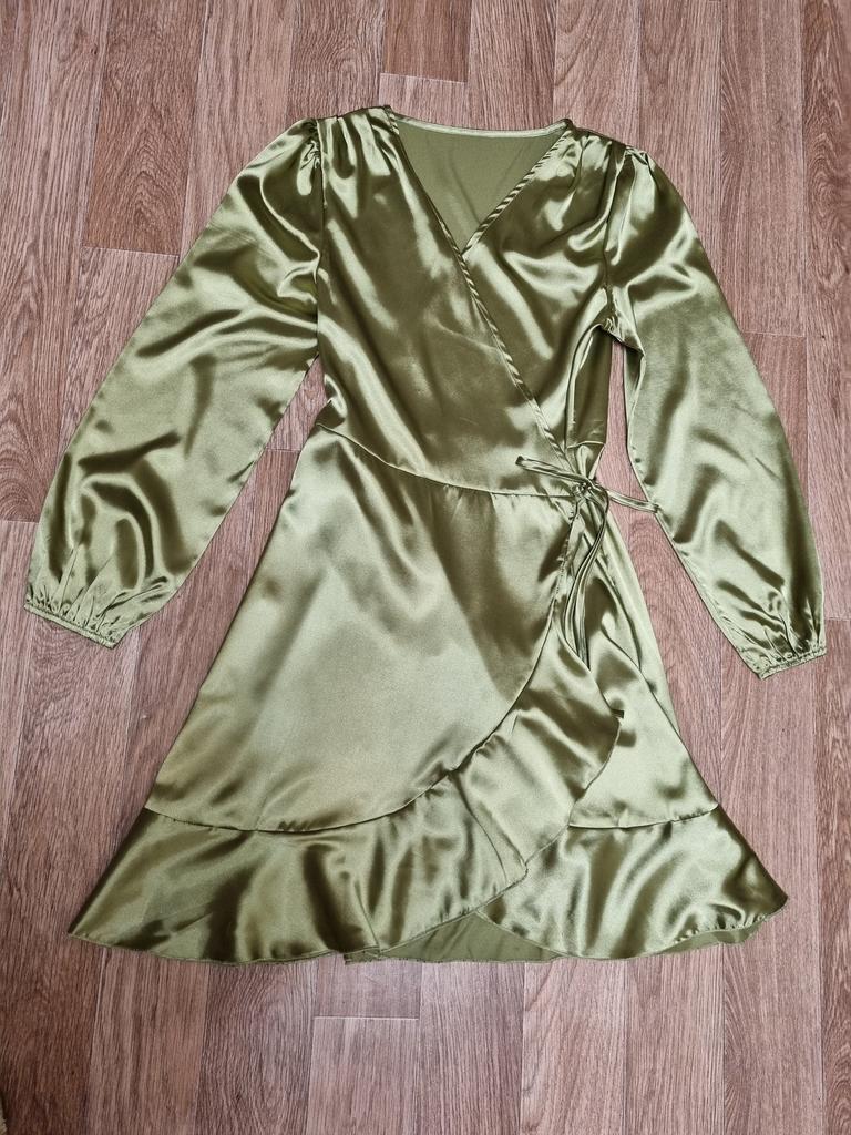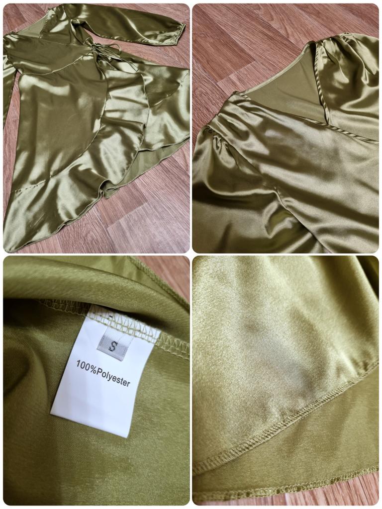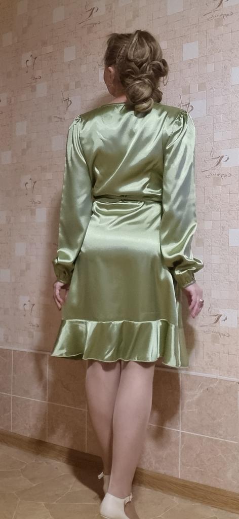 Нежное атласное платье с запáхом от Dress Fancy Club Наступает горячая пора подготовки к Новому году, и у многих девушек встаёт вопрос, в чём его встречать. Ещё не поздно заказать это нарядное платье. Платье понравилось сразу! Во-первых, материал - аккуратный, нежный, воздушный атлас, хотя и 100% полиэстер, очень приятный к телу. Во-вторых, цвет - оливковый или фисташковый (при разном освещении), однотонный с красивым отливом (продавец предлагает ещё черное, розовое, кофейное и синее). В третьих, фасон - платье на завязках сбоку, за счёт чего образуется запáх на груди, красивая драпировка на плечах создает иллюзию дополнительного объёма, рукава - длинные фонарики. Длина при росте 150 см до колена, но запáх спереди чуть их приоткрывает, что делает платье очень женственным и элегантным. На параметры 85×64×91 размер S подошёл идеально. Замеры вещи: грудь 86 см, талия 64 см, бедра 100 см, ширина плеч 35 см, длина рукава 60 см, длина по спинке 88 см, т.е. существенно маломерит, относительно таблицы продавца. Кроме того, платье универсано. Не люблю вещи на один выход. Поэтому с удовольствием рекомендую. Личный промокод на скидку 5% на любые товары joom: 4AB2XJFKPZ. Приглашаю в мой телеграм-канал followmekanal.