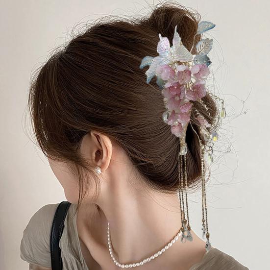 Украшенная красивым мотивом бабочки и замысловатыми бусинами и кисточками, похожими на кристаллы, эта заколка выделяется своей декоративной металлической структурой, которая ставит эстетическую привлекательность на первое место, одновременно улучшая общий вид вашей прически.