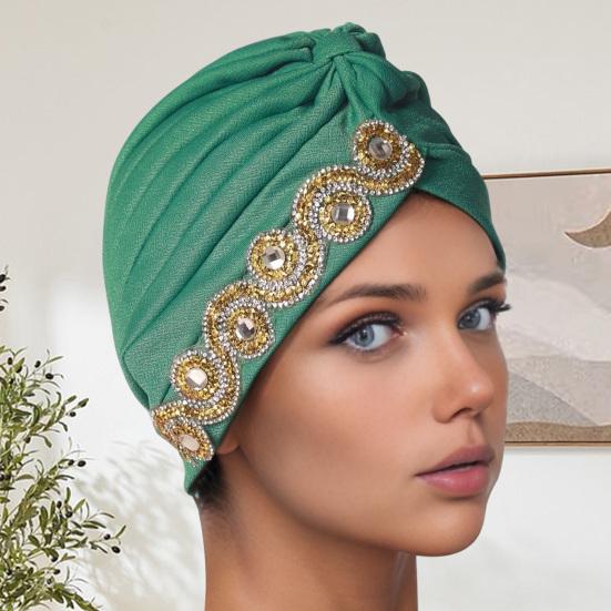 Элегантный платок-шапка: Подчеркните свой стиль нашей изысканной шапкой-платком, изготовленной из высококачественной полиэстеровой ткани.. Скрученный и плиссированный дизайн, украшенный стразами, добавляет нотку изысканности и элегантности любому наряду.