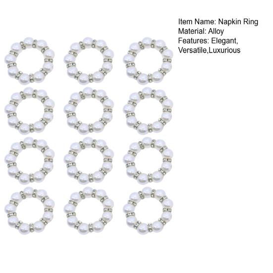 Роскошный набор: Включает 12 изысканных колец для салфеток из искусственного жемчуга и стразов, изготовленных из высококачественного сплава. Этого обильного количества идеально хватит для ежедневных или сезонных украшений стола, позволяя вам поделиться с друзьями и отпраздновать летнюю яркость стильно.