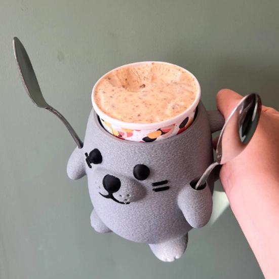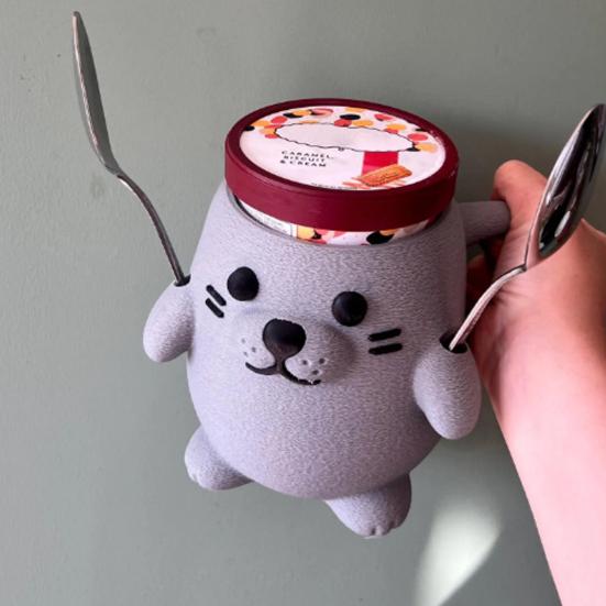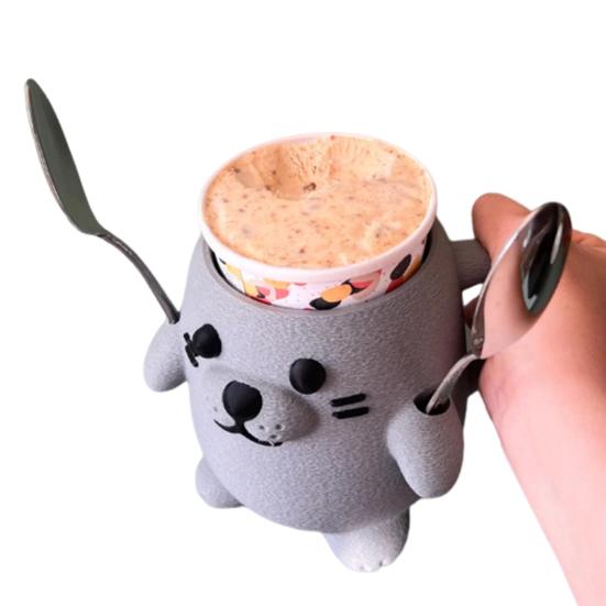 Представляем подставку для мороженого, очаровательное и практичное дополнение к вашим кухонным принадлежностям.. Этот забавный дизайн с тюленем имеет 3D-лицо и лапу, держащую ложку, добавляя нотку причудливости вашему удовольствию от мороженого.