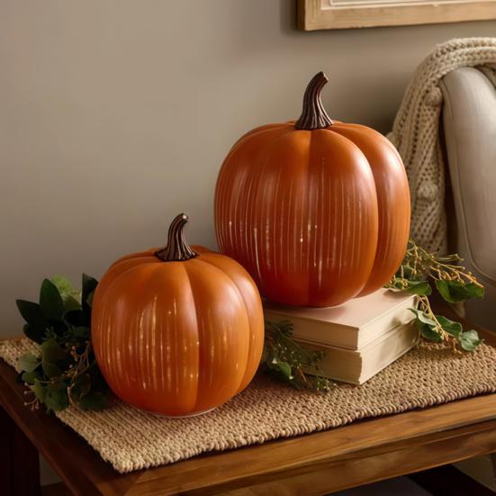 Универсальные варианты отображения: Украсьте любой уголок вашего дома этими изысканными тыквами, которые идеально впишутся на полки, столы или каминные полки, предлагая универсальные возможности для стилизации вашего осеннего декора.