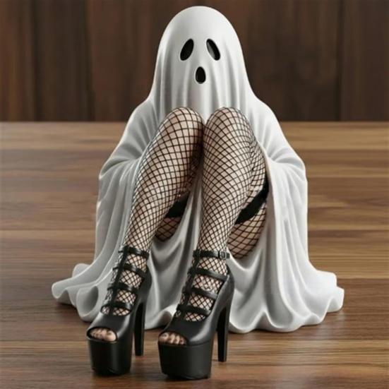Универсальный декор на Хэллоуин и круглый год: Преобразите ваше пространство этим полимерным украшением, дерзким призраком, который плавно переходит от центрального элемента дома с привидениями к готическому декору полки, идеально подходящим для жутких инсталляций или темной эстетики.