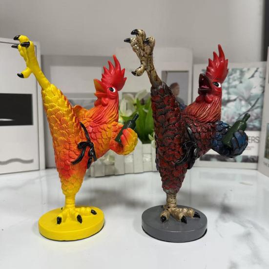 Дизайн «Кунг-фу Петух»: Эта статуэтка Кунг-фу Петуха воплощает тему «Пьяный цыпленок», сочетая сущность петуха с динамичными кунг-фу стойками и игривыми элементами для живого, причудливого вида.