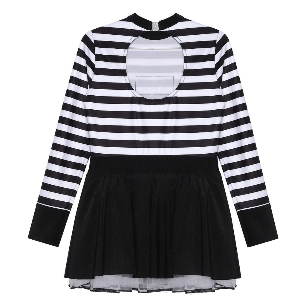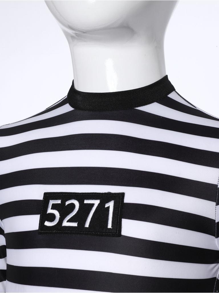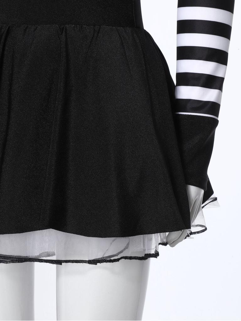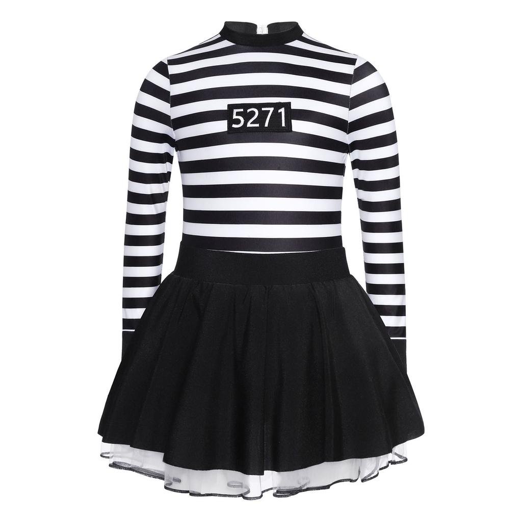 Полосатое платье заключенной для девочек, юбка-пачка с оборками, вырез на спине, круглый вырез, длинный рукав, для костюмированных игр