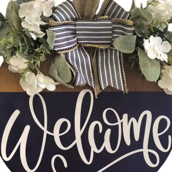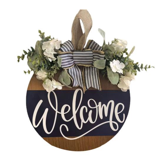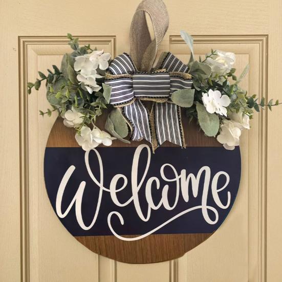 Welcome guests in style with this charming Door Hanging Sign. The bow and artificial greenery decoration add vibrancy and energy, making it perfect for enhancing your door's aesthetics.