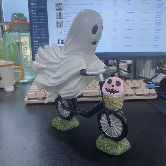 Реализм, написанный от руки: Искусно детализированный и расписанный вручную с реалистичными чертами, призрак, едущий на велосипеде, излучает очарование и характер, добавляя причудливый штрих любому пространству.