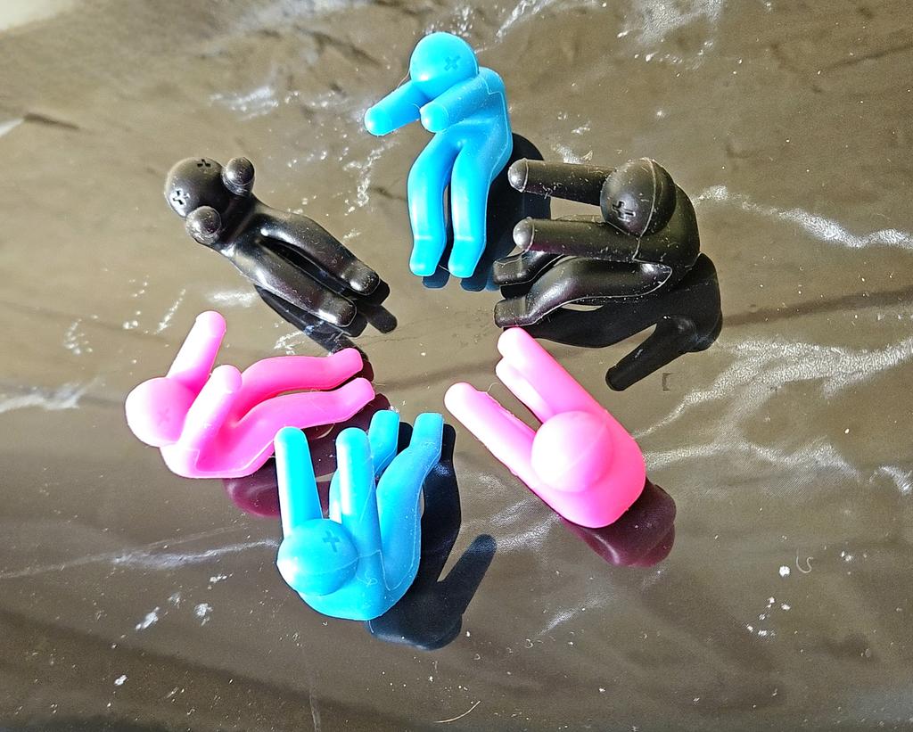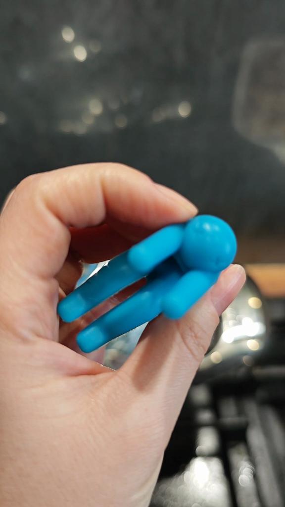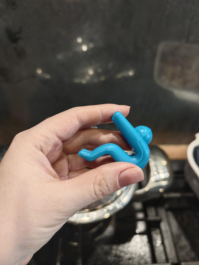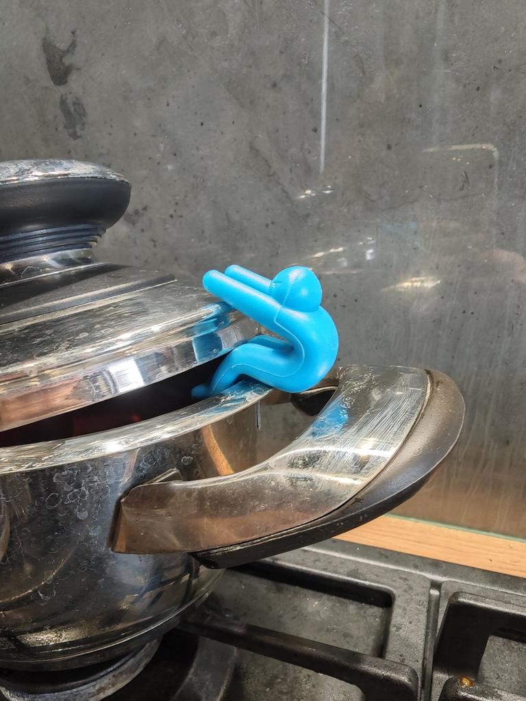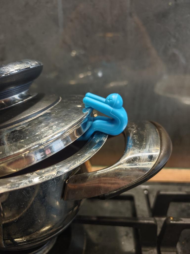 Милый держатель крышки Мелочь, порой незаменимая на кухне. Держит крышку кастрюли полуоткрытой. Держатель в виде человечка, приходит надомного цвета. Материал - плотный пищевой силикон. Я думаю, на каждой кухне точно должно быть несколько таких человечков))