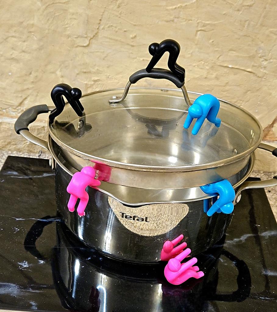Весёлые человечки - маленькие кухонные помощники🧡 Кастрюльные крышки больше не захлопываются. Человечки держат оборону)) Пусть эти маленькие герои сделают жизнь на кухне немного веселее и удобнее) Изготовлены они из силикона, выдержат высокий нагрев. Можно заказать одного или сразу 6, сделать приятный подарок своим близким, чтобы еда не убегала из кострюль)) Держатся крепко, благодаря своей форме. От души рекомендую, они - милаши🧡