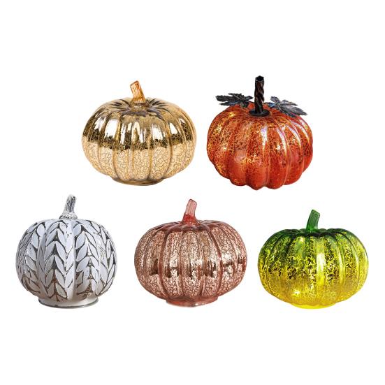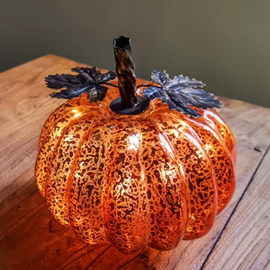 Украсьте свой сезонный декор нашими светящимися тыквами с таймером. Эти очаровательные стеклянные тыквы украшены узорами в виде звездного неба, добавляющими элегантности вашему дому..