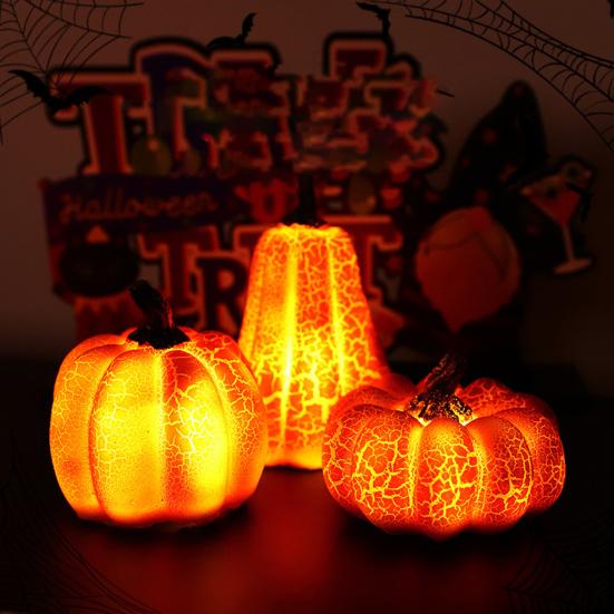 Реалистичная эстетика треснувшей тыквы: Благодаря своему замысловатому дизайну, имитирующему треснувшую тыкву, этот фонарь добавляет вашим хэллоуинским торжествам нотку жуткого реализма, усиливая жуткую атмосферу вашего декора.