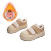 Кожаные туфли на липучке женские 2025 зима новые на толстой подошве бархатные хлопковые туфли повседневные маленькие белые туфли универсальная обувь детская