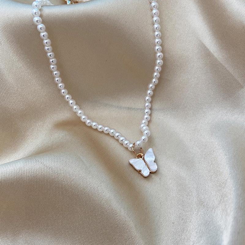 Простое опаловое ожерелье с подвеской в виде бабочки, элегантное колье с имитацией жемчуга, модная цепочка на ключицу для женщин, подарки