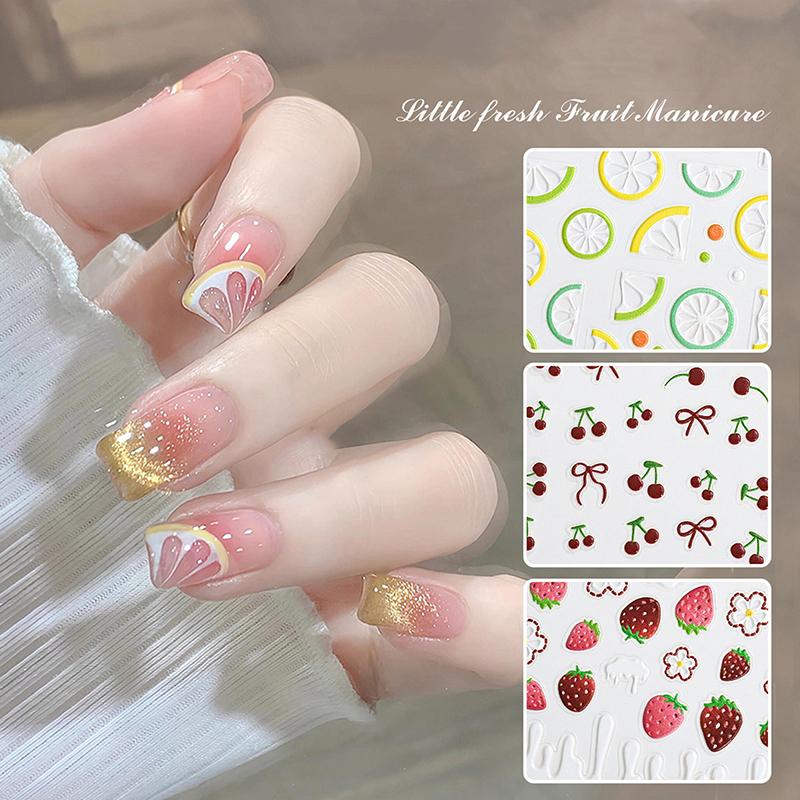 Лимон Вишня Клубника Сделай сам 5D Мягкий Тисненый Рельеф Самоклеящиеся Украшения для Ногтей Наклейки Декаль