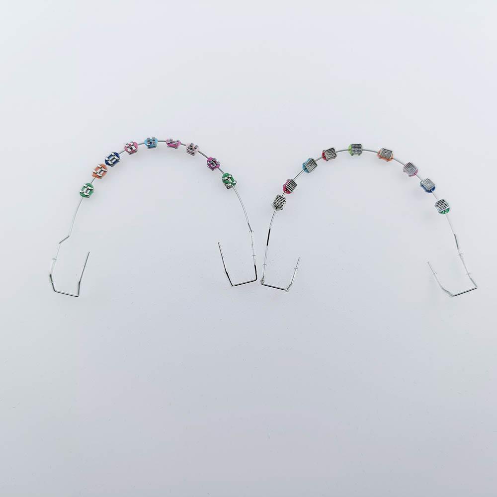 1 пара красочных фейковых брекетов, модные брекеты, украшения для временного украшения зубов с металлическими дугами, брекетами и ортодонтическими лигатурными лигатурами
