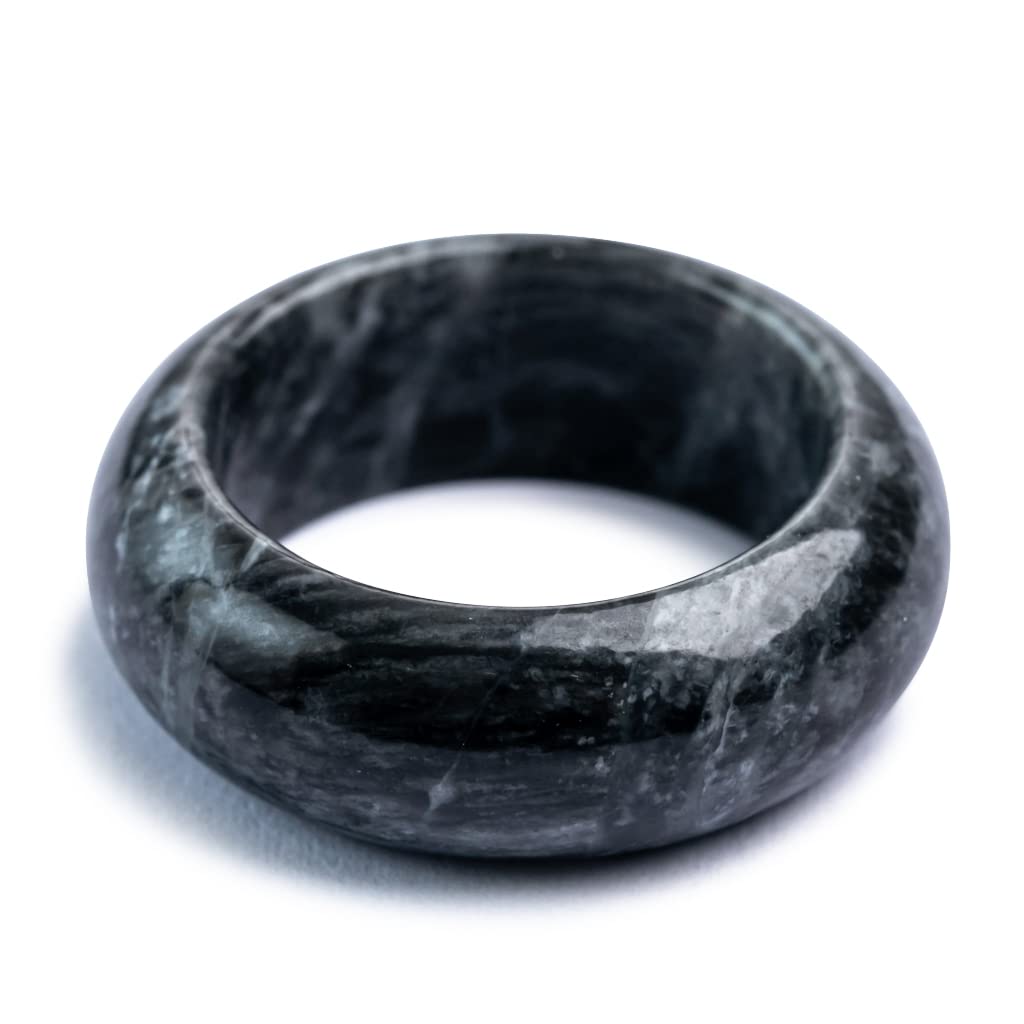 О пьесе: Это натуральное кольцо-пустотелое из итойгавского нефрита, изготовленное из черного нефрита.. Он имеет черный пестрый узор с редкими серыми оттенками.. На ощупь он прохладный и гладкий и отполирован до блестящего финиша.. *В качестве доказательства его подлинности, изделие будет отправлено с «Гарантией качества» и удобной «специальной коробкой из дерева павловнии». Пожалуйста, обратите внимание: Хотя итойгавский жадеит является твердым камнем, он может сломаться при сильном ударе.. Пожалуйста, соблюдайте осторожность при ежедневном ношении.. О нашей мастерской: С древних времен нефрит символизировал богатство и власть, и был доступен только избранным.. Нефритовые магатама и другие нефритовые бусины были обнаружены при раскопках руин периода Дзёмон в Японии, и легенда о принцессе Нунакава, связанная с итоигавским нефритом, даже записана в Кодзики, старейшей исторической записи Японии.. Многие драгоценные камни используются просто как украшения, но нефрит — это не только это.; говорят, что его использовали для различных целей, в том числе в ритуалах для вознесения молитв. За границей нефрит использовался в качестве материала для украшений и предметов интерьера из-за его красоты, но он также использовался для аналогичных целей в далеких землях, например, как камень с магическими силами для исцеления тела, или как духовный камень в магии.