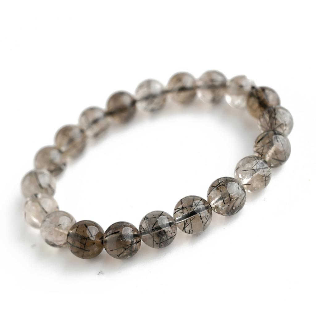 Черный Дымчатый Кварц с Рутилом Браслет Турмалин на запястье 16 см Лимитированный Натуральная Сила Молитва Удача Фэн-шуй [Eigado] (Черный кварц), Камень 9,5 мм,