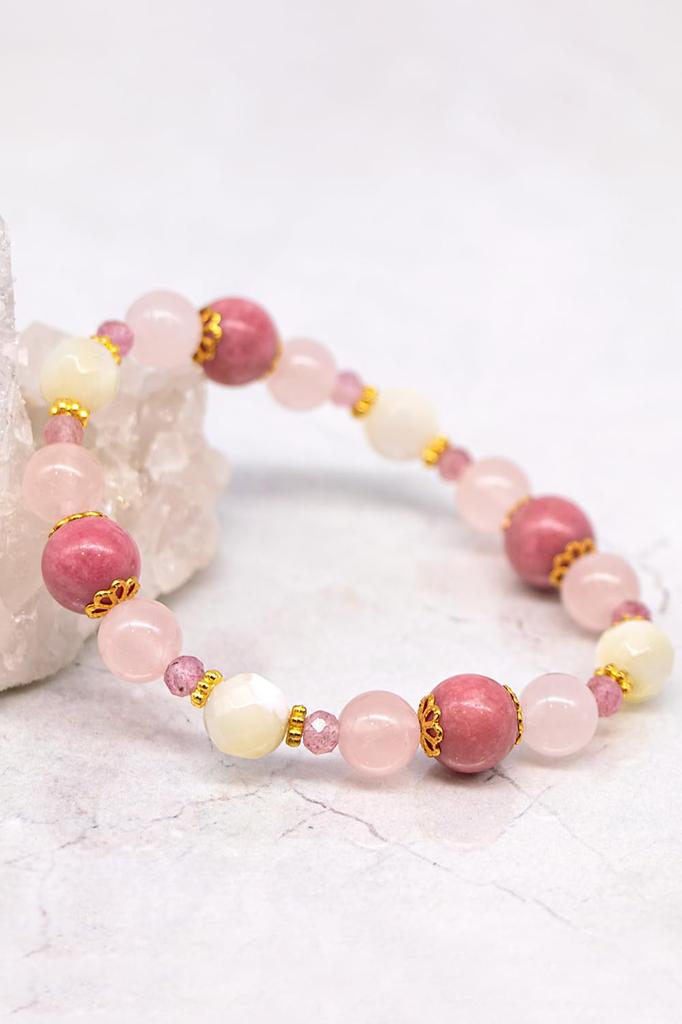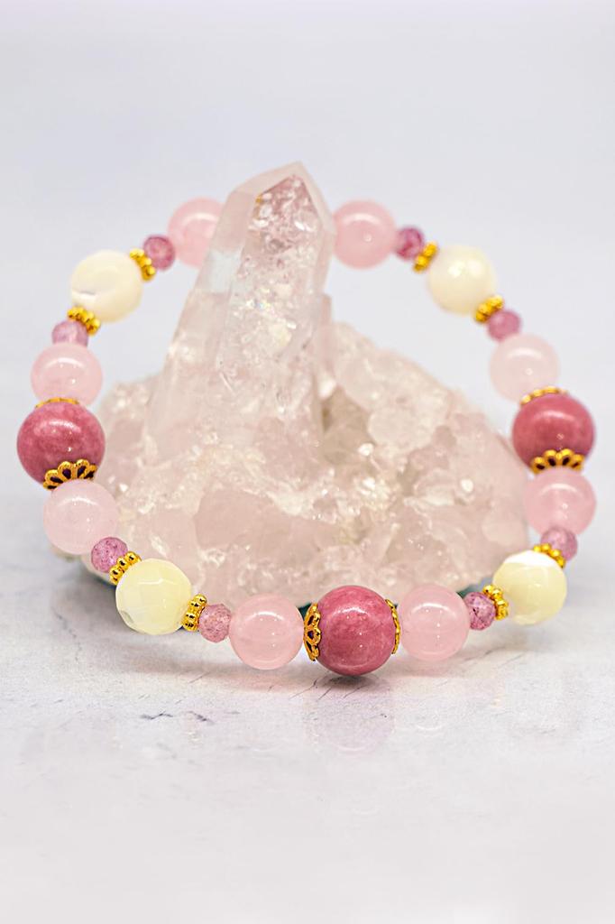 Браслет из камня силы Лииша для любви и вдохновленный мастером онмёдо Кейей, с натуральным розовым кварцем и амулетом на удачу в браке, сделано в Такахаси.