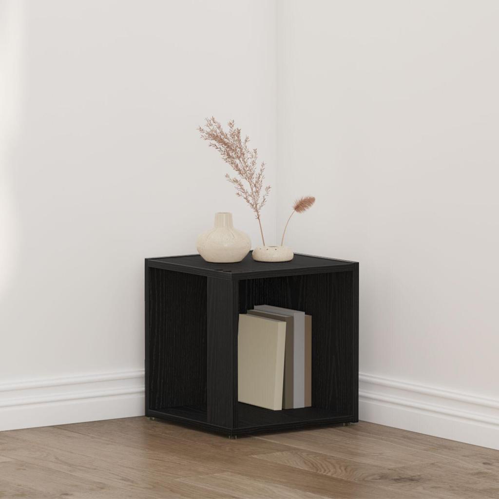 Beistelltisch aus schwarzem Eichenholz, niedriger Nachttisch im Schlafzimmer, kreativer niedriger Tisch im Wohnzimmer, Maße 33x33x34,5 cm