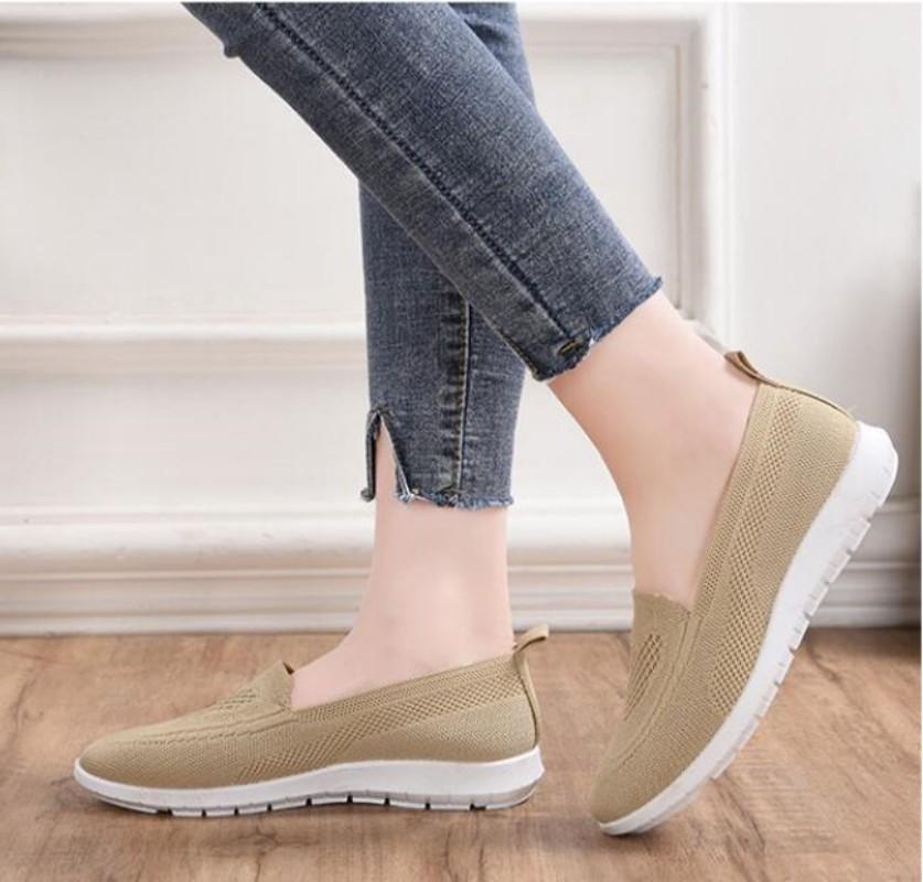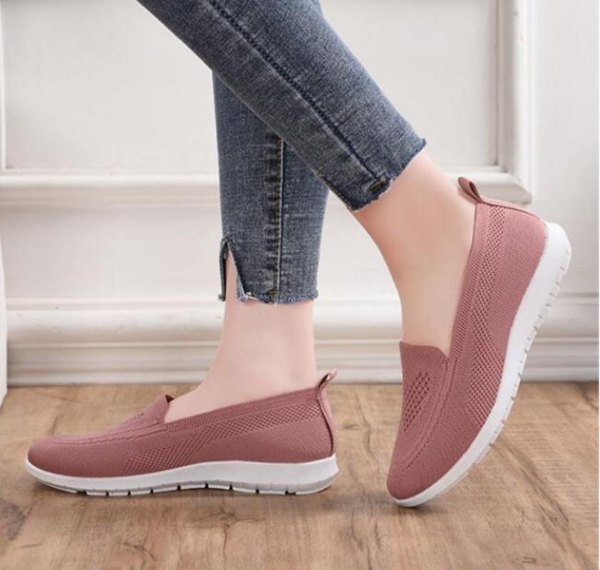 Женская повседневная обувь, легкие кроссовки с дышащей сеткой, летняя вязаная вулканизированная обувь, уличная обувь без шнуровки, теннисные туфли больших размеров