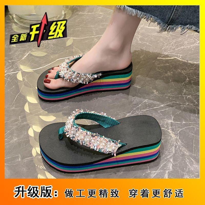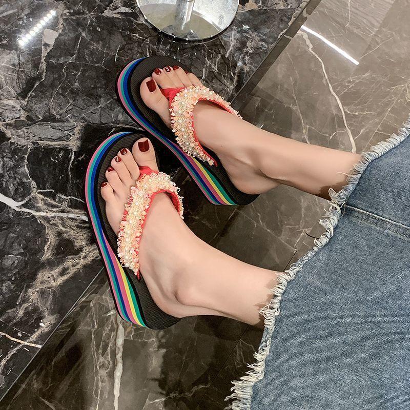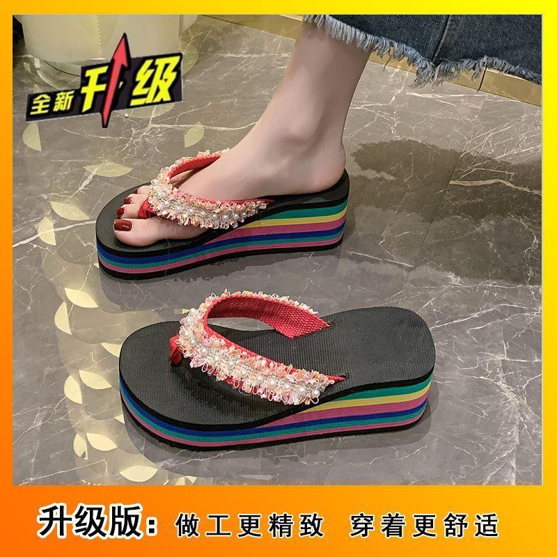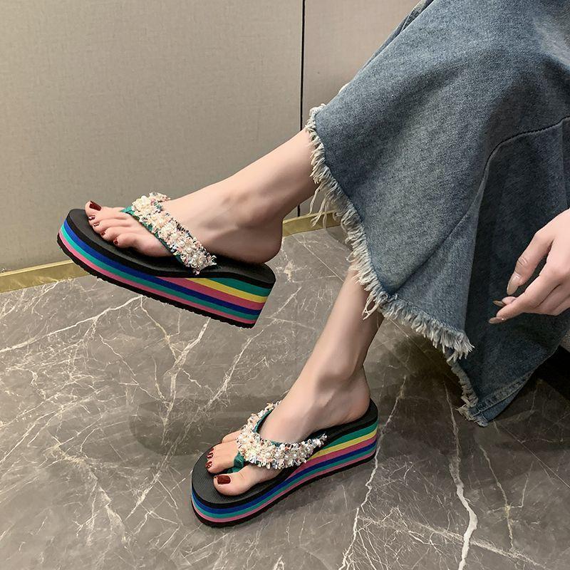 Pinch slippers versatile slippers beach slippers women's 2025 summer and autumn new thick-soled herringbone wedges