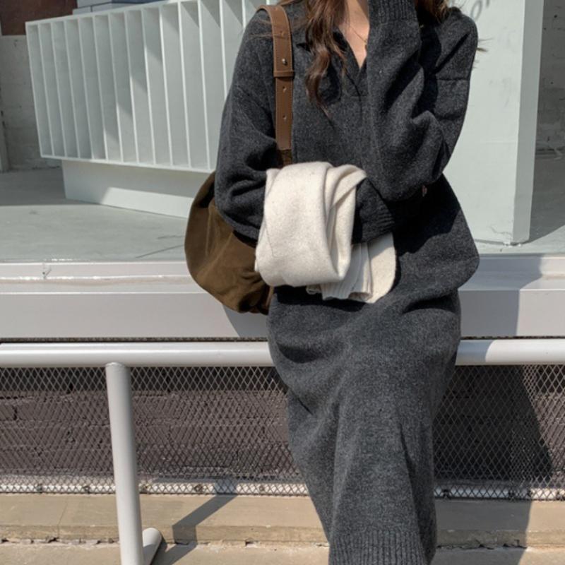 Платье-свитер LYRIA однотонное с воротником поло и высоким воротником, новый осенне-зимний стиль, подходит для пальто, длинное до колена, свободного кроя, толстой вязки. — купить товар онлайн с бесплатной доставкой по всему миру!