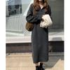 Платье-свитер LYRIA однотонное с воротником поло и высоким воротником, новый осенне-зимний стиль, подходит для пальто, длинное до колена, свободного кроя, толстой вязки.