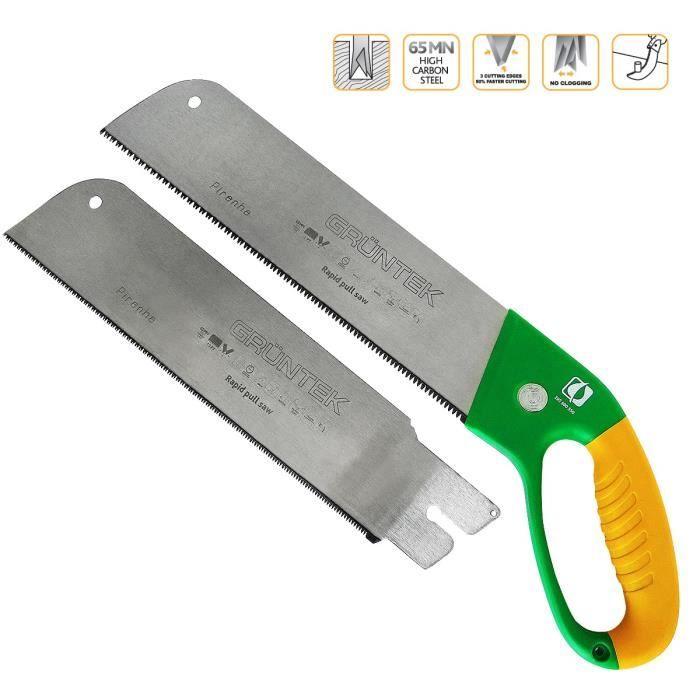 La scie égoïne japonaise légère et robuste piranha de grüntek avec 2 lames et système d’aide à la coupe permet une coupe facile et