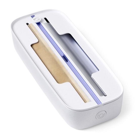 Резак оснащен двумя безопасными режущими ножами из нержавеющей стали, которые плавно скользят вперед и назад, гарантируя каждый раз точный рез.. Для дополнительного удобства сменные ножи поставляются в отдельной упаковке.. Съемная крышка позволяет быстро перезаряжать контейнер, что упрощает замену полиэтиленовой пленки при необходимости.
