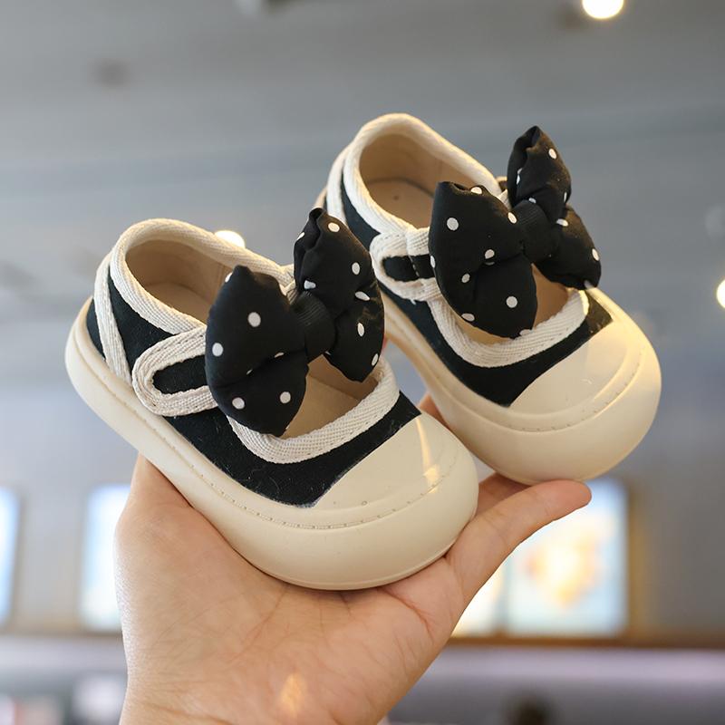 Детская обувь для ходьбы с защитой носка от ударов, девчачьи балетки с нескользящей мягкой подошвой, новая детская повседневная обувь 2025 года, с большим бантом и в горошек