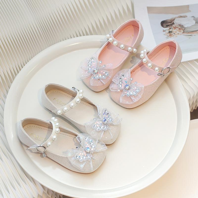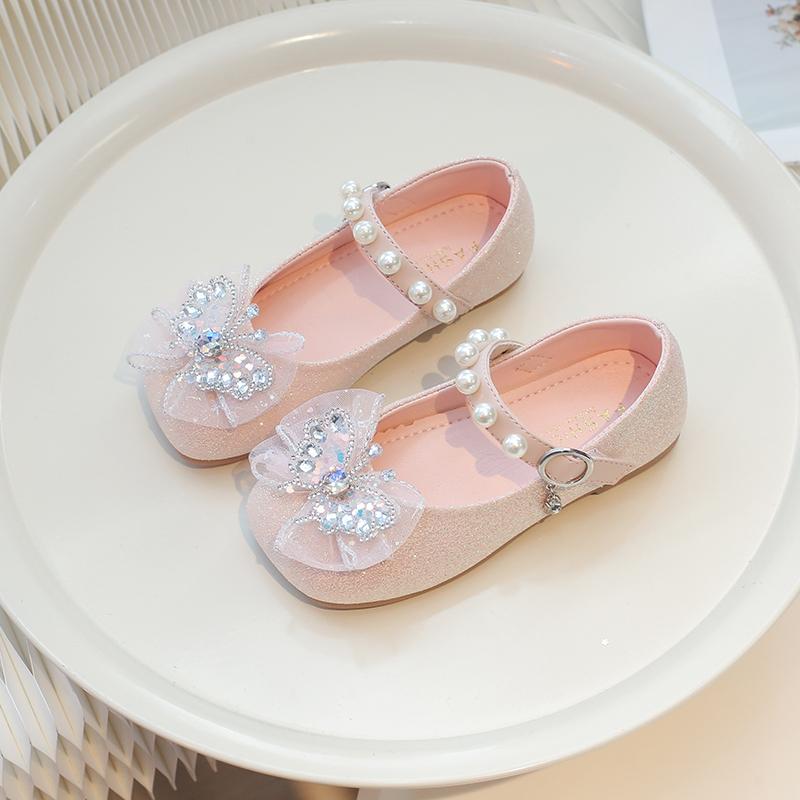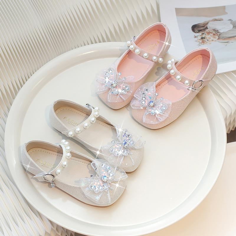 Детская обувь на плоской подошве, кружевная, с бантом, милая, кожаная обувь для девочек, бабочка, круглый носок, новая модная детская обувь принцессы 2025, трендовая