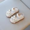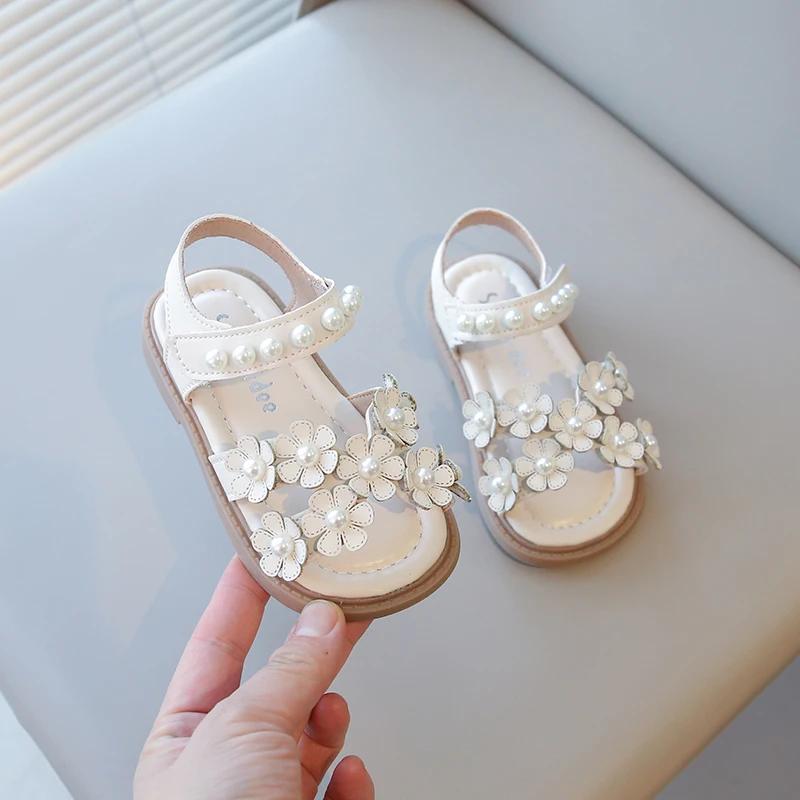 Летняя обувь для маленьких девочек с бусинами, милые детские цветочные сандалии принцессы, с открытым носком, противоскользящие, размеры 21-30, на липучке, богемный, милый
