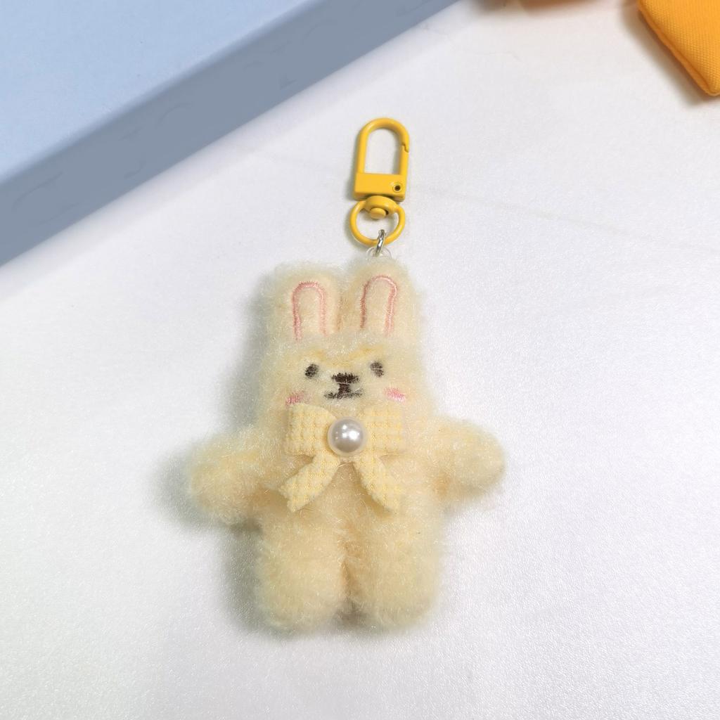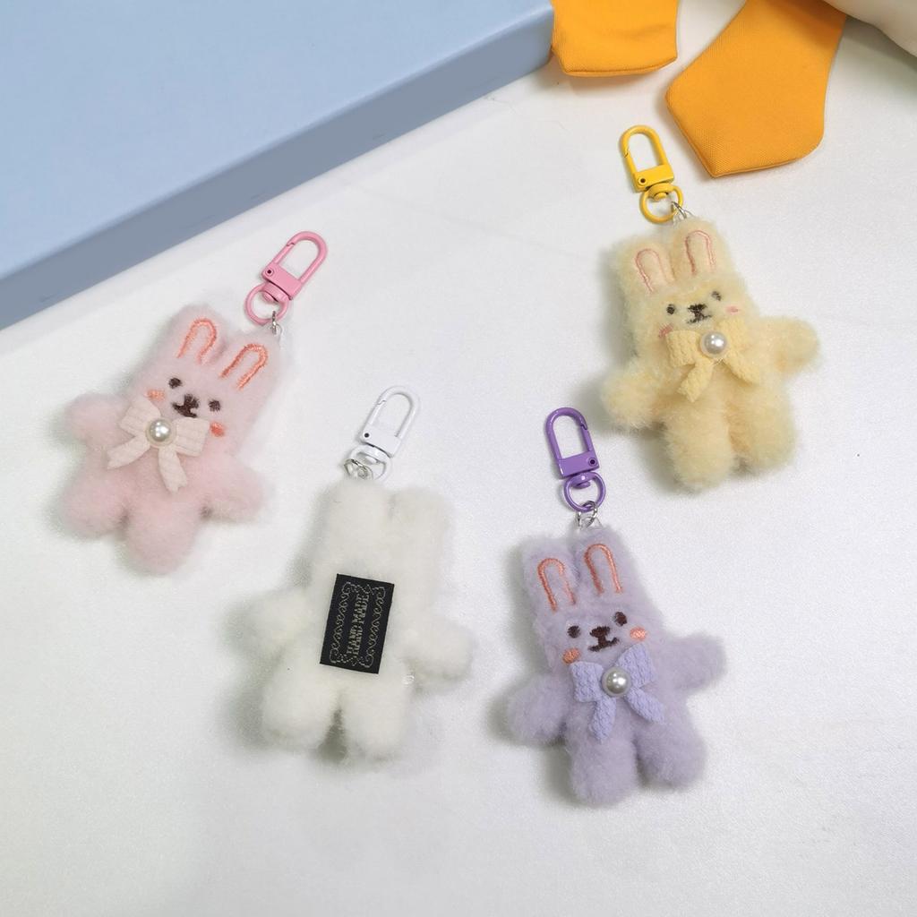 Этот брелок в виде кролика имеет милый плюшевый дизайн, дополненный галстуком-бабочкой из жемчуга, демонстрируя сладкий и девичий стиль, что делает его идеальным подарком для студенток и девушек.