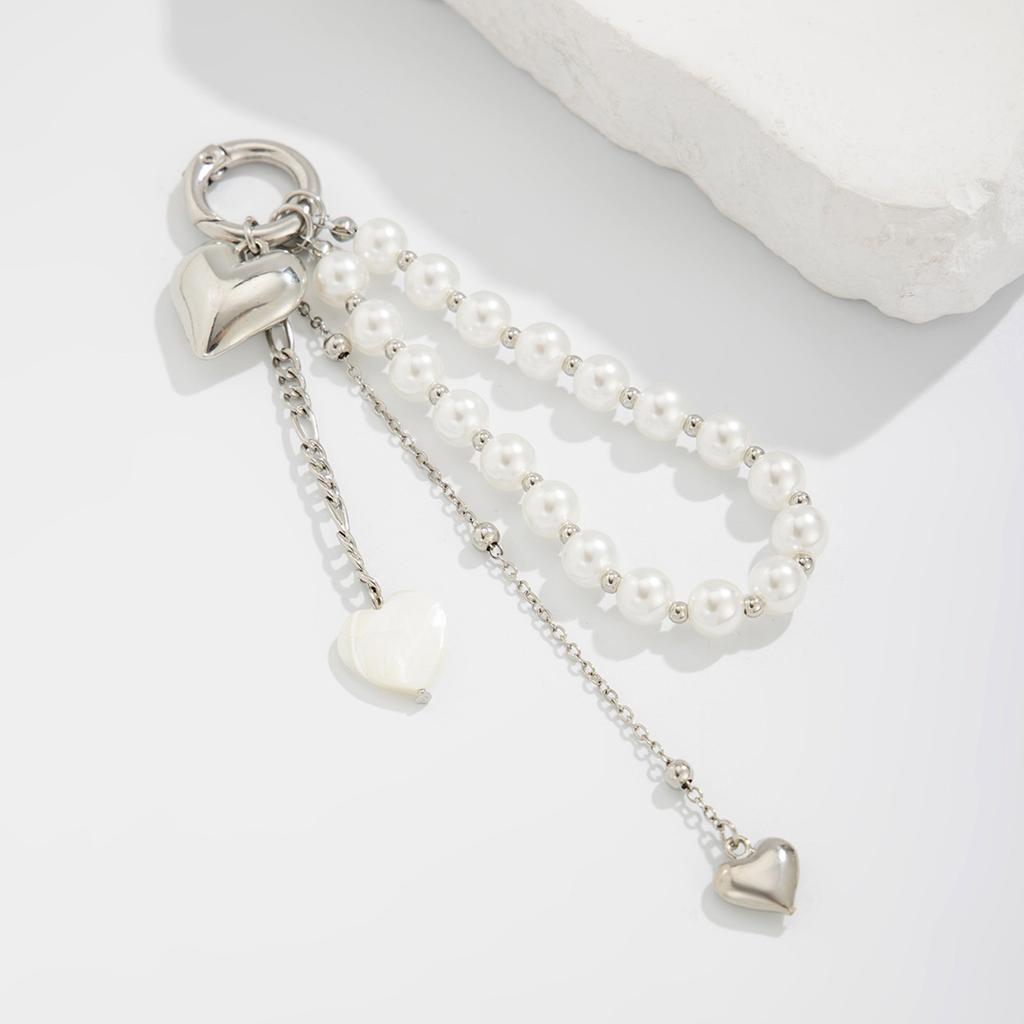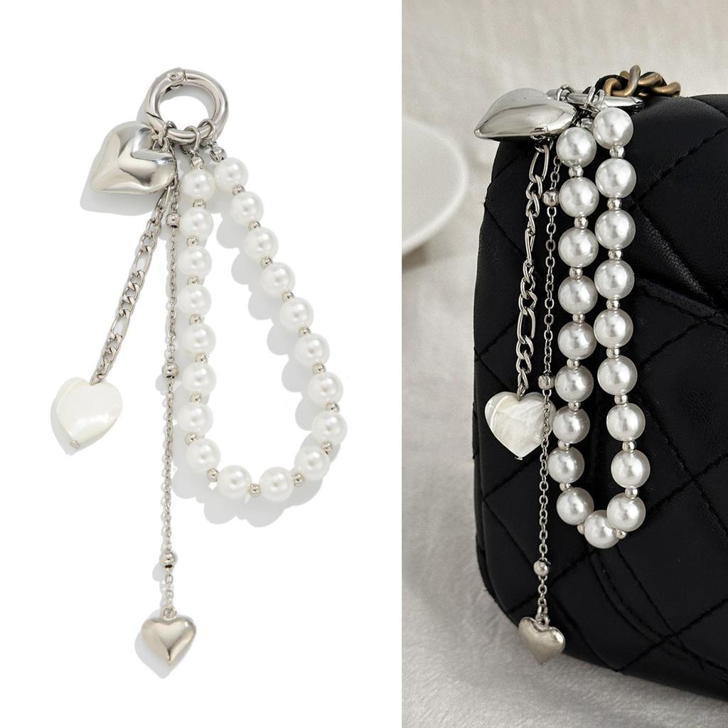 Элегантный брелок для ключей в форме сердца с бусинами, подвеска для ключей в виде сердца, украшение для сумки, сплавная текстура, держатель для ключей, подходит для подарка